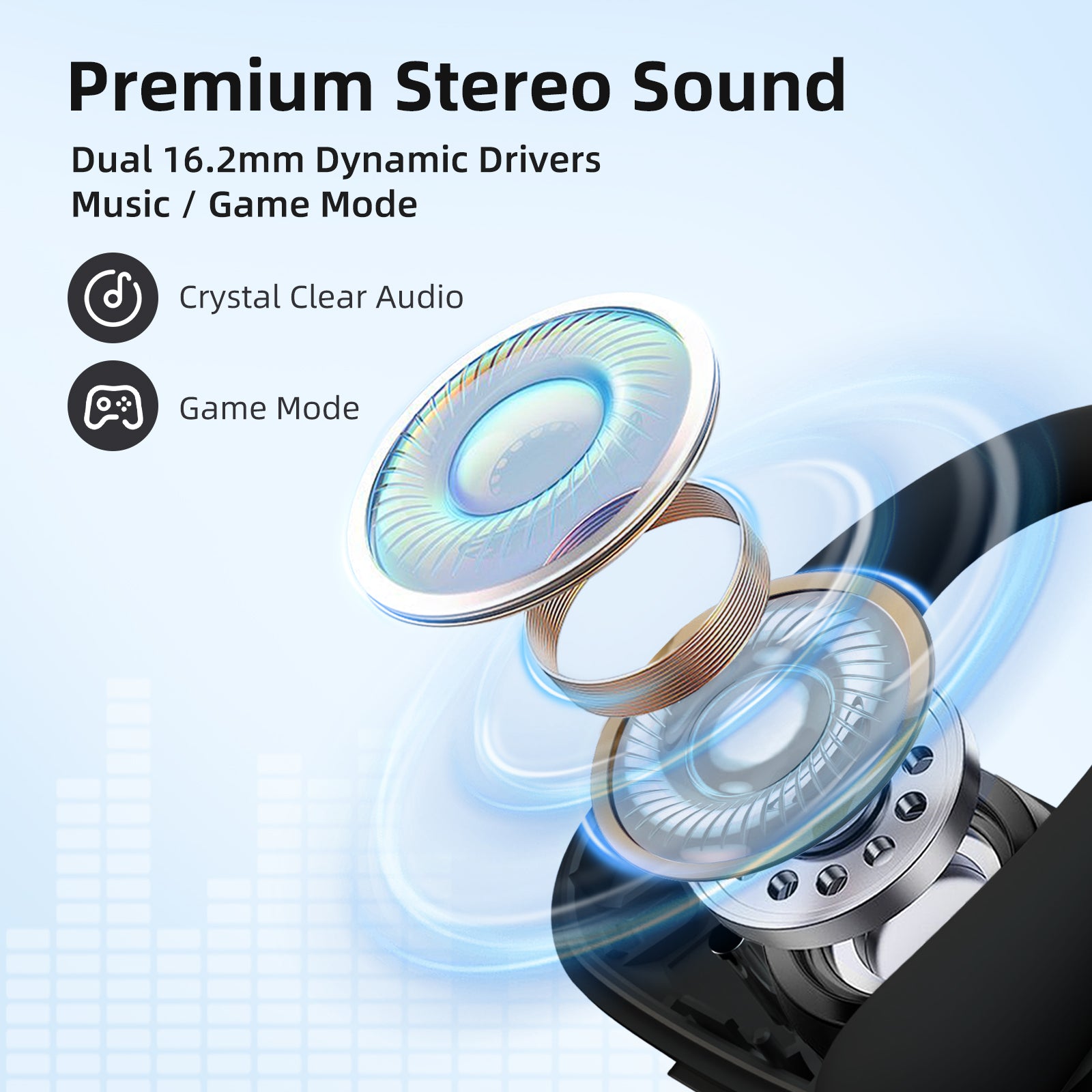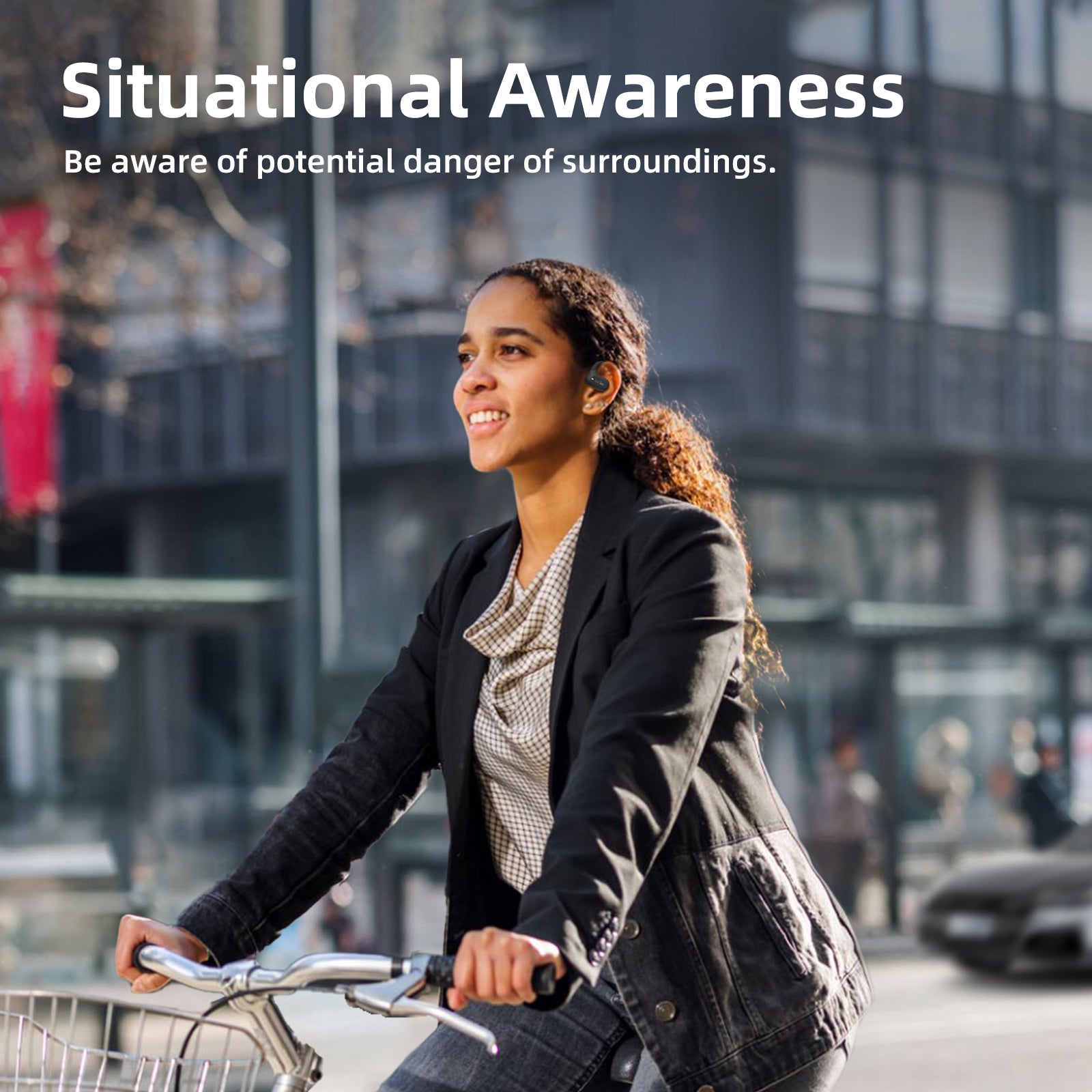Wearing open air headphones, you can still hear the surrounding sounds and avoid potential dangers. Using Bluetooth 5.4, the ultra-open wireless headphones have a stable and fast connection.