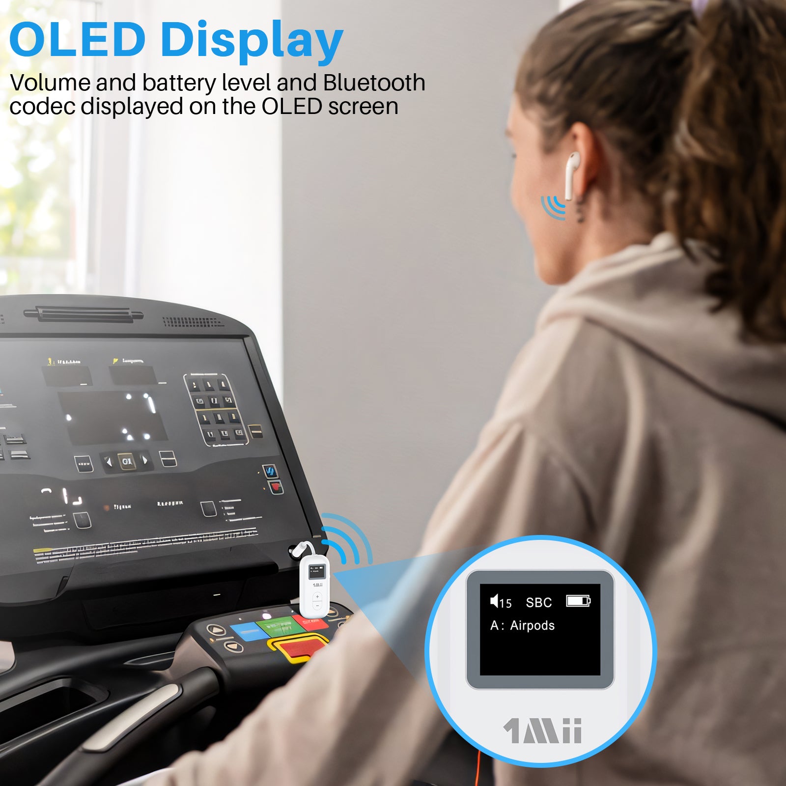 Bluetooth 5.3 Transmitter with OLED Display for up to 2 AirPods Wireless Headphones, Bluetooth Transmitter w/aptX HD/AD/LL, Use with 3.5mm Audio Jack on Airplanes/Gym/TV/iPad/Tablets