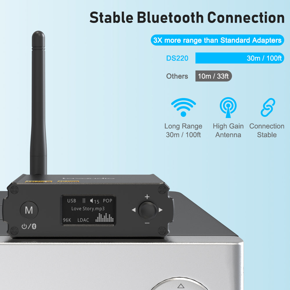 Lavaudio DS220 HiFi Bluetooth receiver features the LDAC audio codec transmitting at the maximum bitrate of 990kbps, delivering uncompromised high-resolution sound quality.