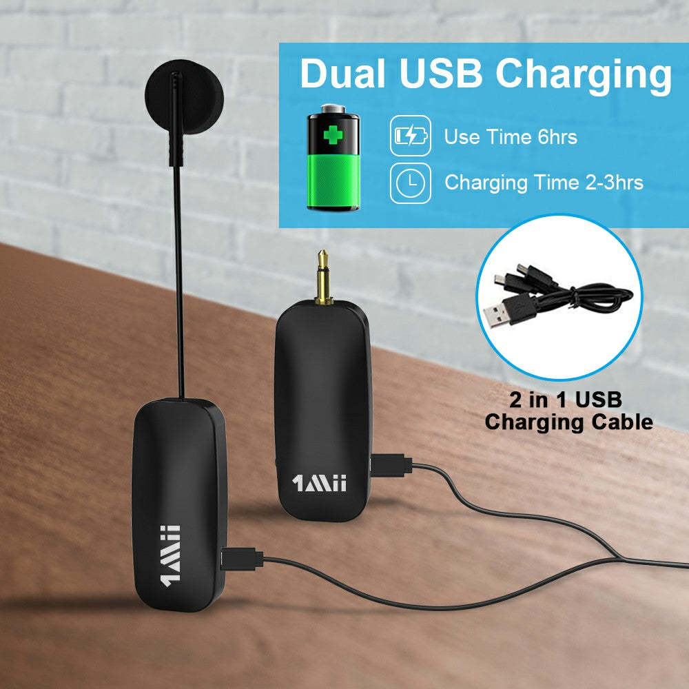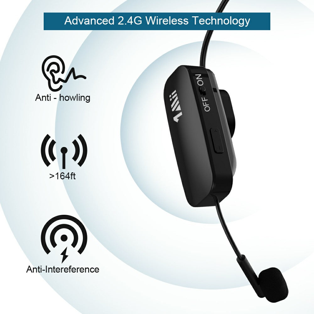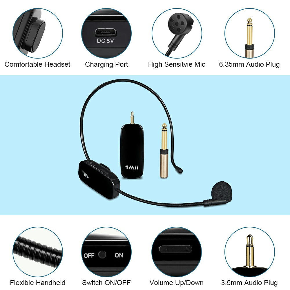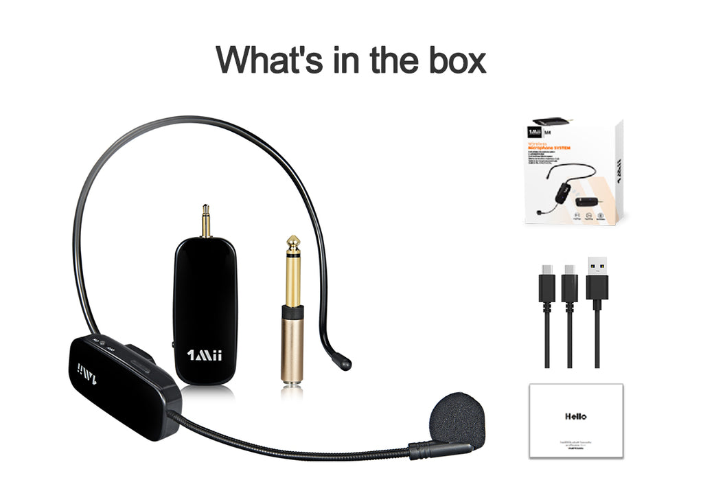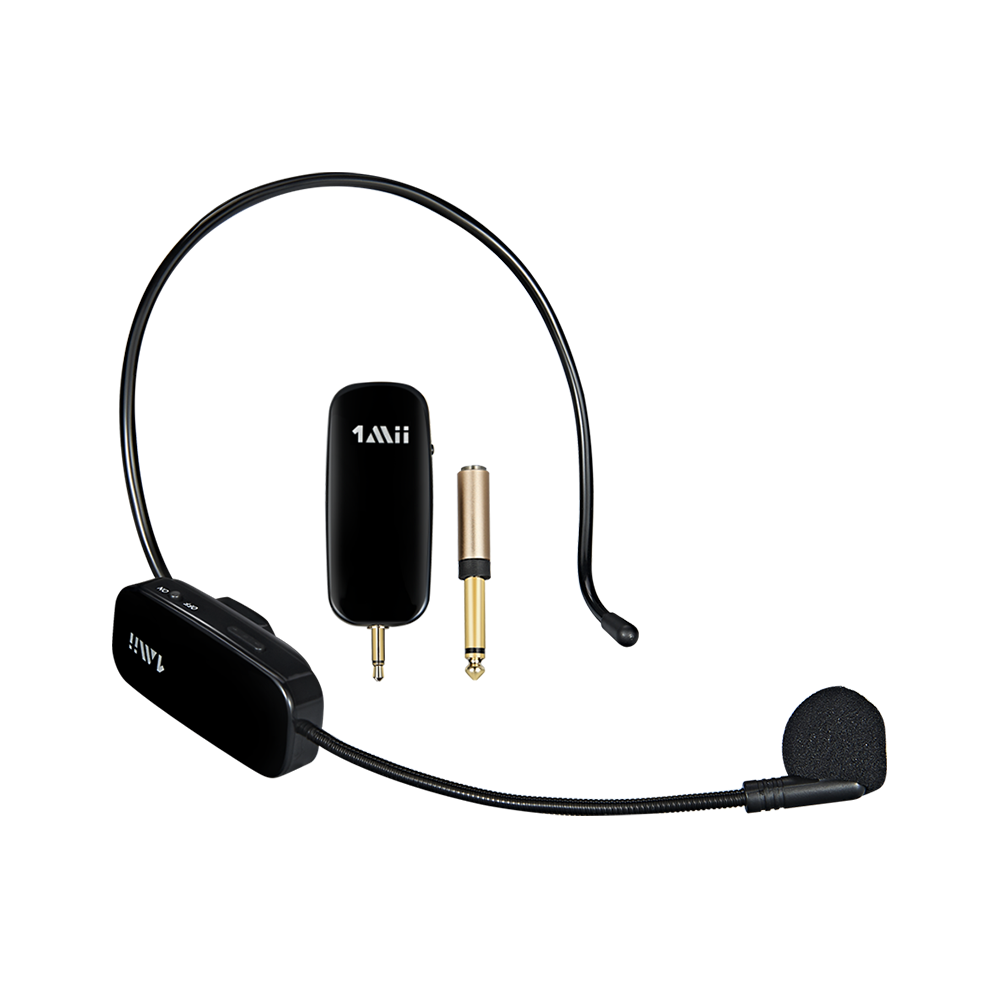 1Mii headset with microphone is engineered with the most advanced 2.4G wireless technology. The wireless headset microphone automatically connects to when power on.