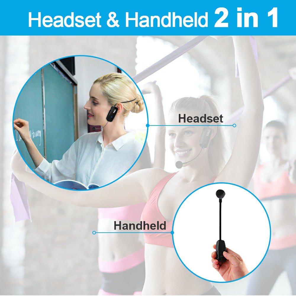 1mii remote wireless microphone, wireless headset microphone system, 100-foot range, 2.4G wireless microphone 2 in 1, fitness microphone headset, suitable for speakers, voice amplifier, PA speakers, fitness instructors, teachers.