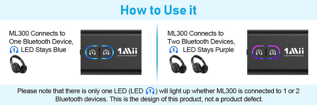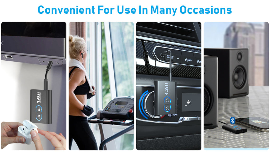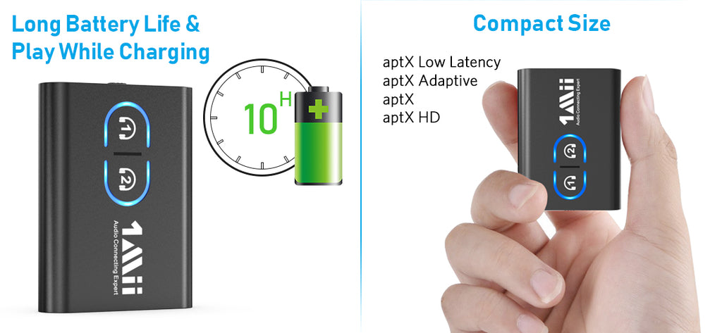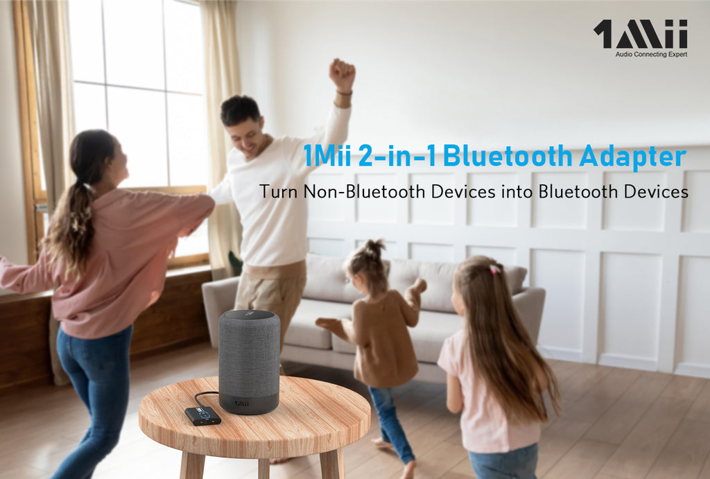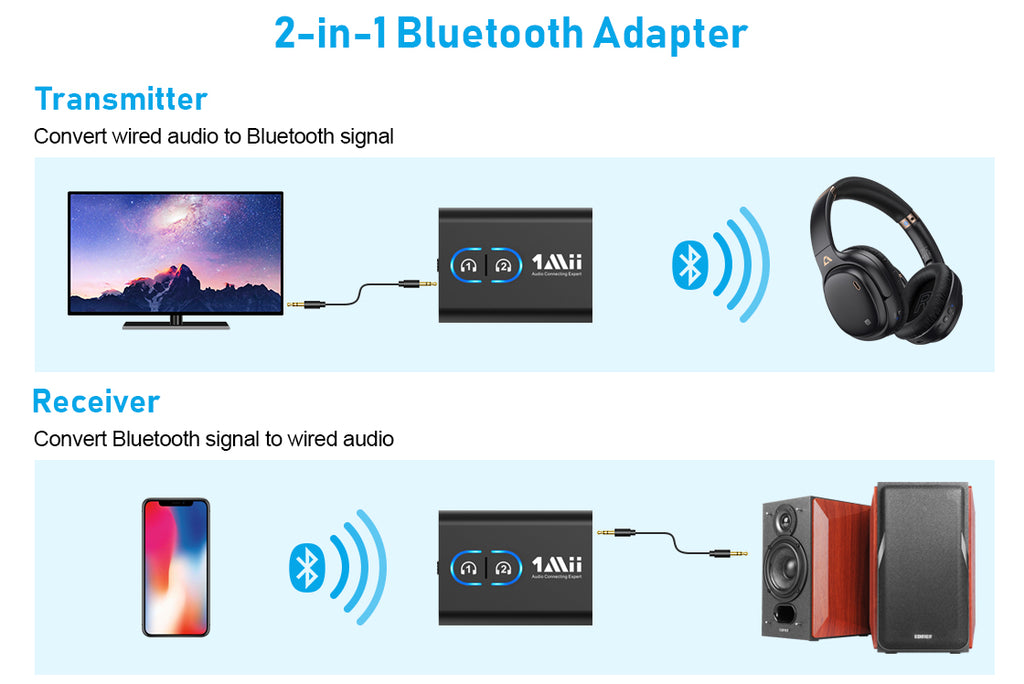 1Mii Bluetooth audio transmitter support transmitter and receiver mode. In Transmitter mode, it is very easy to turn a non-Bluetooth TV, PC into Bluetooth transmitter. In receiver mode, Bluetooth 5.3 chip ensures high fidelity Bluetooth audio signal for music streaming to those speakers or home stereo systems that doesn’t have the capability.